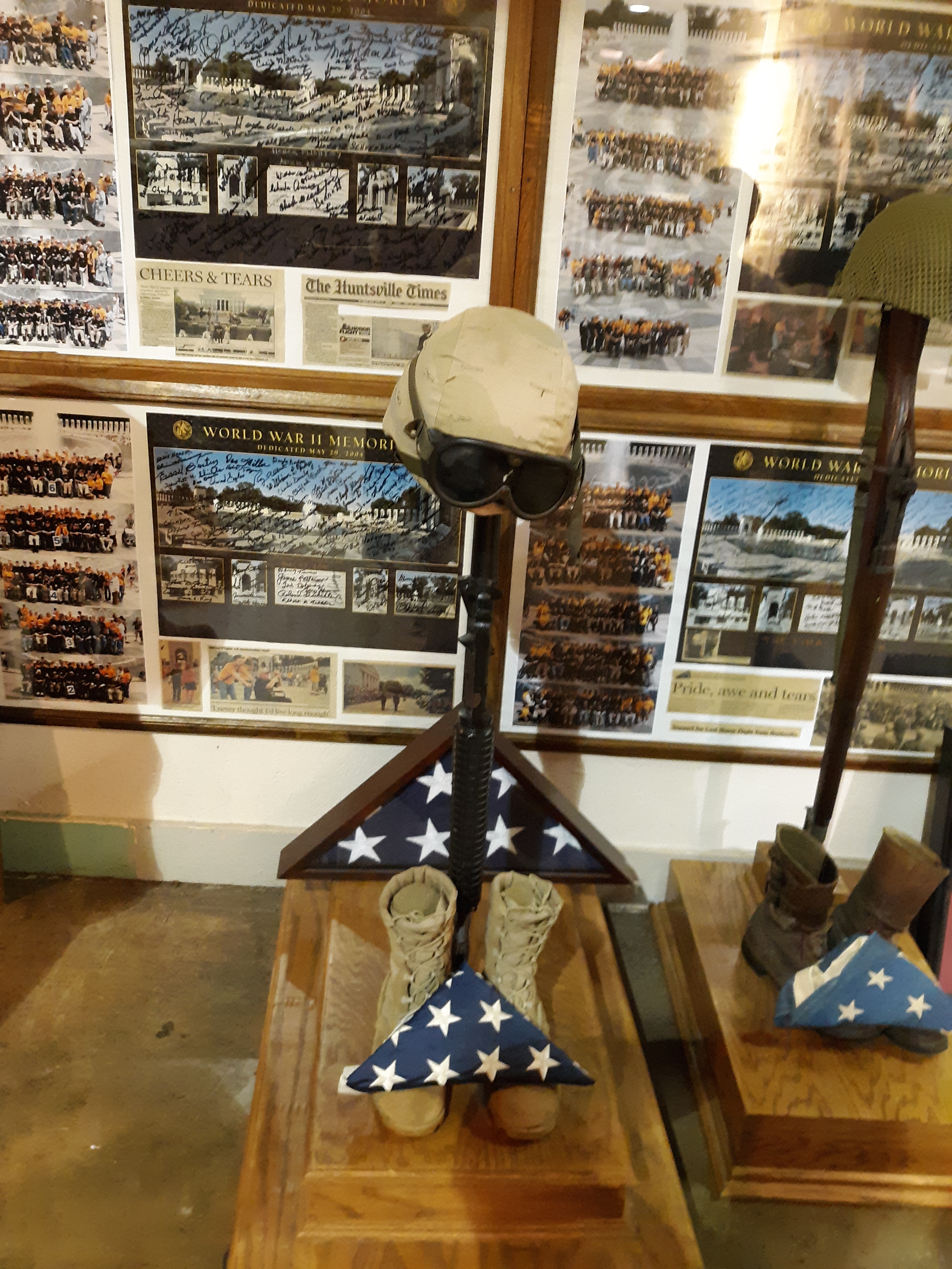 We finally made it to the Veterans’ Museum in Huntsville. If you have any interest in American war history, then add this museum to your list of must visits. It was packed with stuff! Ben is turning into a history buff (especially anything war related) So he kept up a running commentary about everything he saw. Ben was especially excited about the Sergeant York exhibit and the messenger pigeon display. My husband got him turned onto Sabaton History episodes so he knows a ton of really cool facts and loves history now, so its a win/win situation. **Also, Sabaton sings mostly about real historical heroes and is a clean metal band, so if you have a boy (or girl) who thinks history is boring let them listen to Sabaton and maybe they can renew their interest while listening to awesome music. We met a veteran at the museum who was an aviation expert and he told us all about how they used gliders in WWII to deliver equipment and troops safely. Basically it was a reinforced hang glider that an airplane would drop and the pilots could only use wing flaps to steer the thing. It reminded me of Buzz Lightyear “falling with style”.
