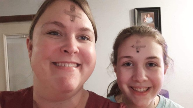 The snow started falling about the time we would have been in church for Ash Wednesday, so we decided to stay home and read the readings ourselves. We were sad that we were not going to get ashes on our foreheads….until Emma remembered we had our palms from last year behind our crucifix. I checked online and some parishes were recommending people who couldn’t come to mass might try burning their own palms instead. It was a really neat experience overall. **On a side note, during the quarantine we missed having holy water in the house so we tried to make our own…..we failed. During the blessing, we realized that it was from a pagan ceremony instead of the Catholic one…..so we stopped immediately….crossed ourselves….and threw out the water. **We may have summoned the murder hornets…..just joking I think???