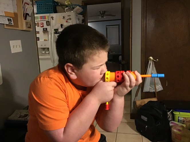 We stayed home a lot this week and hung out together. Ben has been into weapons lately so he has made various guns out of his tinker toy set and we drew while listening to Winnie the Pooh on audio book. The voice of Piglet always cracks us up!
