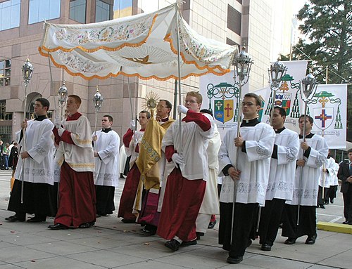 Emma and I participated in a procession around the church grounds and said the rosary with other church members as the Blessed Sacrament was carried in front of us.