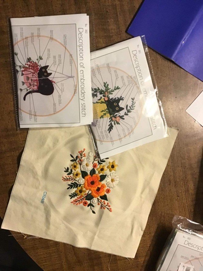 I am currently finishing up a floral embroidery scene, but the two cat patterns (that you can see in the picture above) I finished during my quarantine. Emma got the pink pot one and Ben claimed the yellow pot one for his room. I’m glad they love my “sanity projects”!